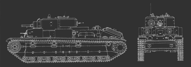 Russian T28 1934 Medium Tank; Airbrush Illustration by Les Still